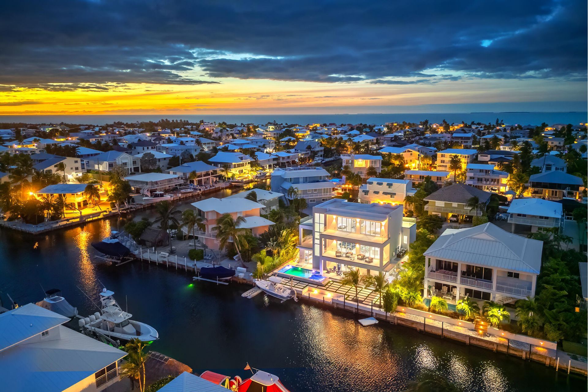Introducing one of the most exceptional homes ever offered in prestigious Port Antigua! Casa Contessa is a 2023 modern coastal estate built by the seller for the seller, with every feature intentionally selected to be top-tier. This 5BR/6.5BA, 3,597 sq ft residence is engineered to perfection with full CBS construction, impact windows/doors, and a true concrete roof.Tucked on a quiet cul-de-sac, the property delivers the ultimate Keys lifestyle with 78 ft of concrete dockage, a boat lift, a heated concrete pool & spa, and a full outdoor kitchen. A dedicated pool bath with a steam shower adds a spa-level luxury rarely found in the Keys. Port Antigua's private sandy beach and gated boat ramp are moments away.Inside, craftsmanship and design shine. The chef's kitchen features a dramatic stone island, Viking and Miele appliances, a built-in espresso machine, and wine cooler. Expansive living areas open to multiple terraces with views of the Atlantic Ocean and spectacular sunset skies, blending modern elegance with island comfort. A future rooftop deck is also possible for even wider views.All five bedrooms offer private en-suite baths, each one uniquely finished with hand-selected stone and tile. No two are alike, giving every suite its own identity. Large walk-in closets elevate livability, while the ground level includes a second living room, bedroom, wet bar, and lockout door, ideal as a guest or mother-in-law suite.Luxury extras include an elevator, independent AC zones for each floor, and two on-demand hot water heaters. Offered fully and tastefully furnished, this home stands as arguably the finest property available in all of Lower Matecumbe.A rare opportunity to own a truly custom-built masterpiece. Seller open to seller financing.